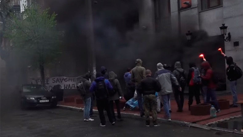 Ukrainian extremist mob pelts Russia Cooperation office in Kiev with flares & smoke bombs (VIDEO)