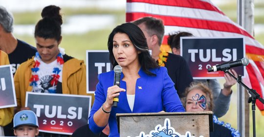 Vi kan väl börja med att vederbörande har väl då naturligtvis en minst lika gedigen militär bakgrund som Tulsi Gabbard har....