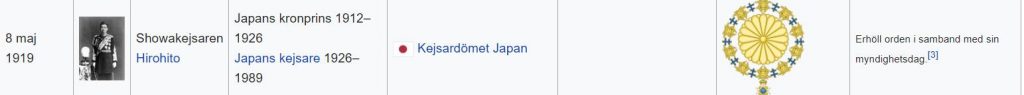 Ja BTW, han var redan Serafimerriddare, det fick han i födelsedagspresent.