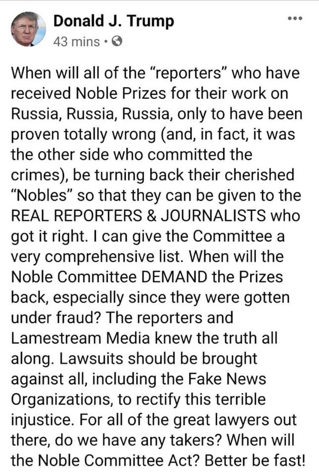 Does anybody get the meaning of what a so-called Noble (not Nobel) Prize is, especially as it pertains to Reporters and Journalists? Noble is defined as, “having or showing fine personal qualities or high moral principles and ideals.” Does sarcasm ever work?