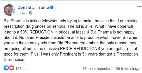 Totalt oväntat så när USA:s president Donald Trump skrev under fredagen under inte mindre än fyra så kallade presidentorder för att sänka priset på receptbelagda läkemedel i landet. Då blev inte alla så glada....