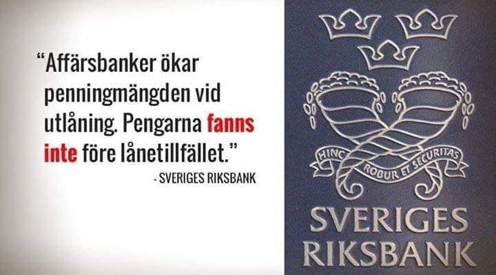 Pengar-betalningsmedlet- skapas av privata banker när företag, privatpersoner, kommuner, landsting och stat tar ett lån- kredit - skuldsätter sig.