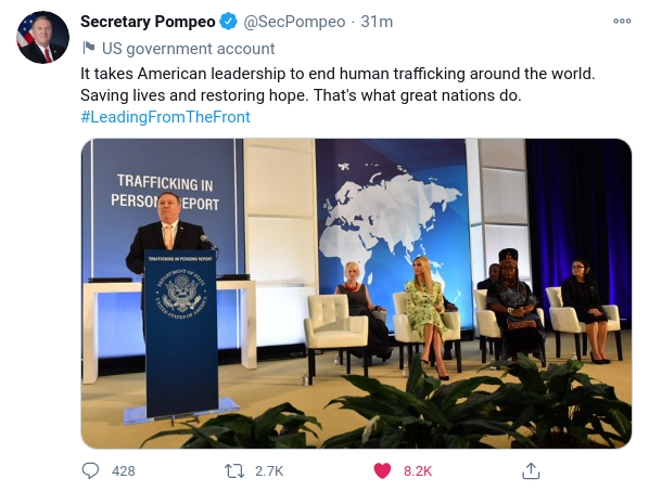 “It takes American leadership to end human trafficking around the w