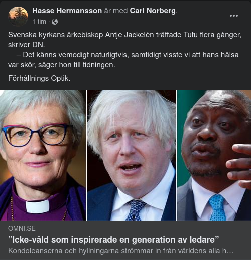 Svenska kyrkans ärkebiskop Antje Jackelén träffade Tutu flera gånger, skriver DN.