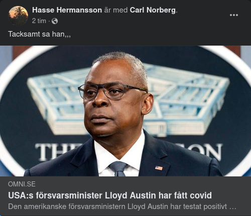 USA:s försvarsminister Lloyd Austin har fått covid