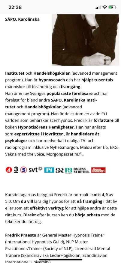Inte nog med det, hur hälsofarligt det kan det egentligen vara när både SÄPO, Karolinska Institutet (Matti Sällberg) och Handelshögskolan har genomgått samma drill med hypnotisören som även anlitats av Hovrätten som expertvittne.