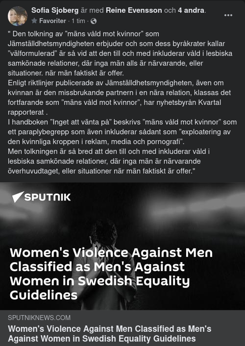 https://sputniknews.com/20220119/womens-violence-against-men-classified-as-mens-against-women-in-swedish-equality-guidelines-1092359267.html?fbclid=IwAR3o7zRIOPpeeRSQvUlPet7E0KK67JyPmxnTNjFIyXxfdWt8gyeiwQ6HFIE