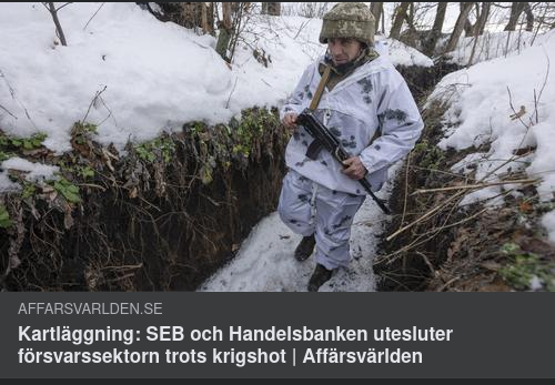 Kartläggning: SEB och Handelsbanken utesluter försvarssektorn trots krigshot