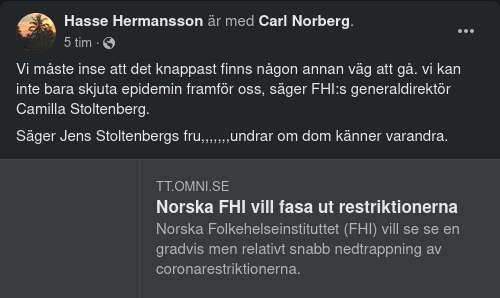 https://bladet.se/nyheter/norska-fhi-vill-oppna-upp-och-hava-restriktioner-ar-battre-att-smittas-nu/?fbclid=IwAR0lVR03GKFY5_oI6vecF7oaYWS1aWWWRKOR0M4m_5gSialKSIJN3m_iXdQ