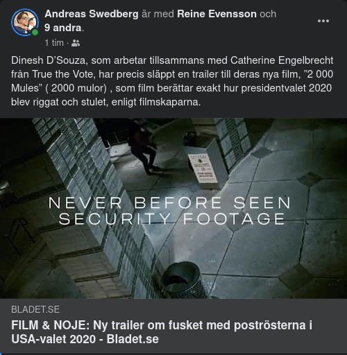 Dinesh D’Souza, som arbetar tillsammans med Catherine Engelbrecht från True the Vote, har precis släppt en trailer till deras nya film, ”2 000 Mules” ( 2000 mulor) , som film berättar exakt hur presidentvalet 2020 blev riggat och stulet, enligt filmskaparna.