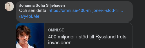 https://omni.se/400-miljoner-i-stod-till-ryssland-trots-invasionen/a/y4pLMe?fbclid=IwAR1CKGKosbk5ZO4sO5LvwRN96JP4OaWSDqnMPJ8JsK9Kq5BHnESdvczgD9I
