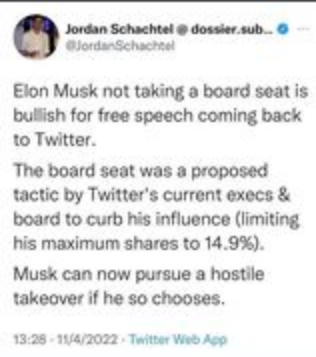 Det skulle ju dessutom kunna vara så att det till och med finns optioner inblandade i Elons förvärv... som dessutom påverkade kursutvecklingen...