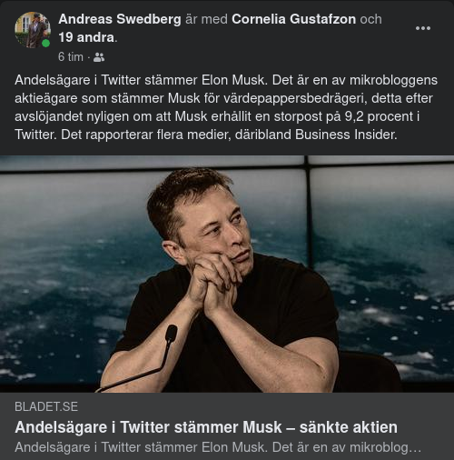 Musk Stämd För Värdepappersbedrägeri Av Twitterandelsägare