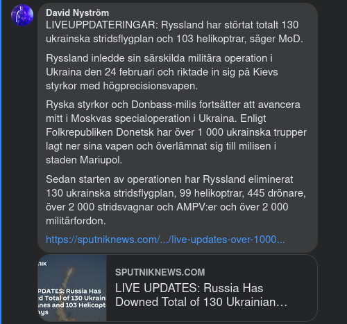 📊In total, 130 aircfaft and 99 helicopters, 244 anti-aircraft missile systems S-300, Buk-M1, Osa AKM, 443 unmanned aerial vehicles, 2,139 tanks and other armored combat vehicles, 241 multiple launch rocket systems, 917 field artillery and mortars, as well as 2,046 units of special military vehicles of the Armed Forces of Ukraine were destroyed during the operation.
