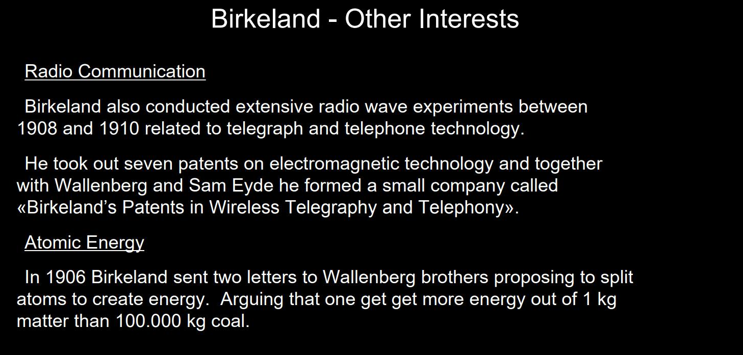 Birkelands Andra Intressen
