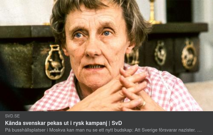 Bredvid bilderna finns urklipp från deras dagböcker och memoarer. Tidningen Resumé har översatt bildtexterna. Till Lindgrens bild har man tagit den här meningen från hennes dagbok: ”Och om det nu ska vara så här, så ropar jag hellre ’Heil Hitler’ för resten av mitt liv än att ha ryssen här, i Sverige. Jag kan inte tänka mig något vidrigare”.