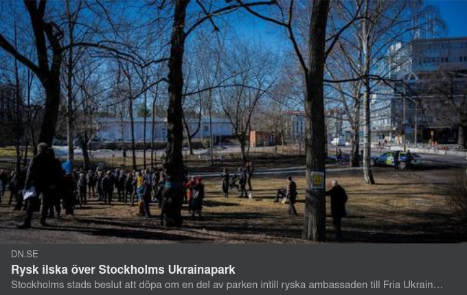 Reaktionen kommer en vecka efter det att Stockholms stadsbyggnadsnämnd beslutat att en del av Mariebergsparken intill ryska ambassaden döps om i solidaritet med det ukrainska folket.