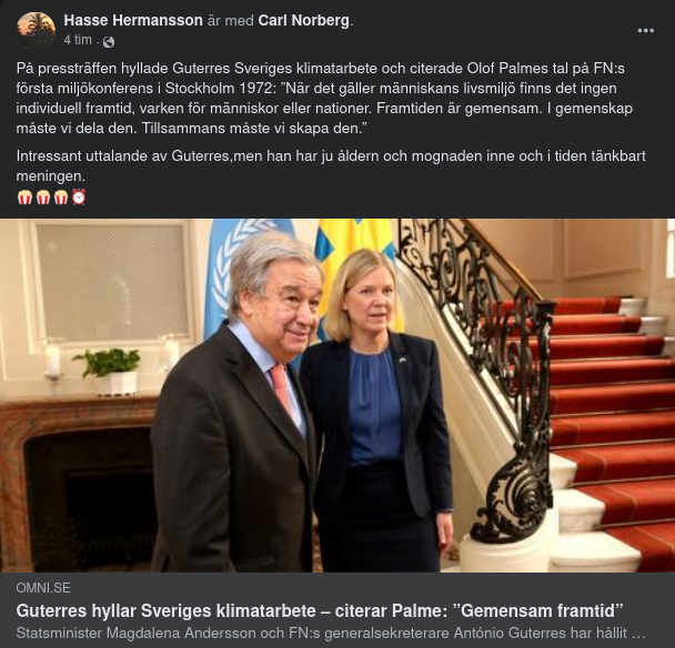 Sverige skär ned en tredjedel av klimatbiståndet i år och Guterres menar att det här kommer skapa misstro mot de rika industriländerna när de inte levererar pengar de har lovat till klimatbistånd.