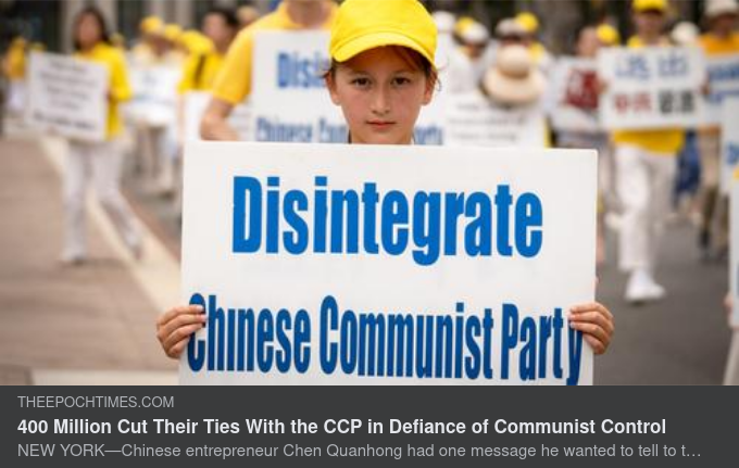 Washington-paraden var den första Chen hade gått med under hans 50-plus år av livet. Det kom före en stor milstolpe för Tuidang-rörelsen: 400 miljoner människor har nu avsagt sig sin KKP-anslutning. Antalet överträffade det märket den 3 augusti.