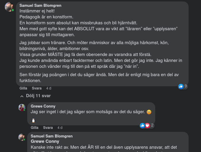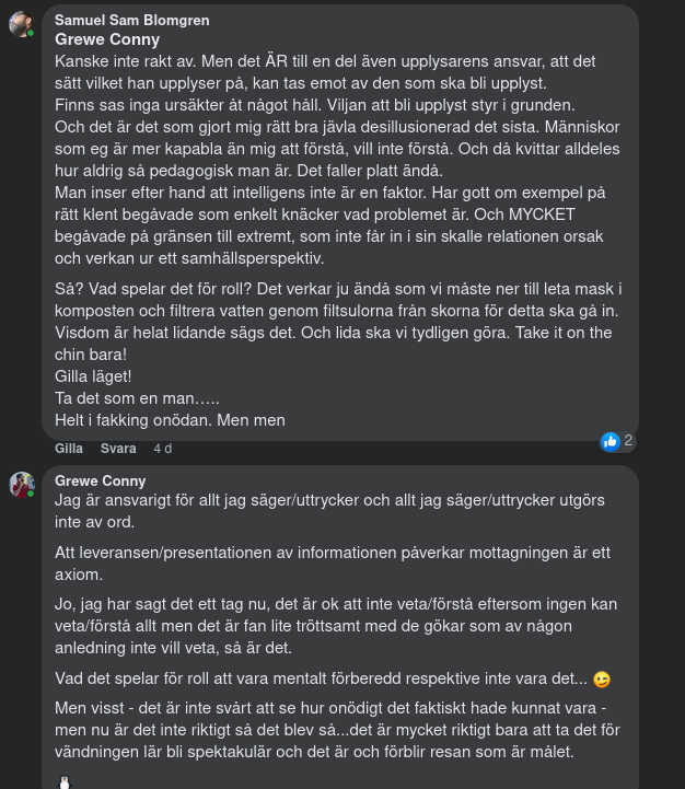 Ansvaret för förståelse är och förblir individens och att hävda annat främjar inte utvecklingen på något sätt.