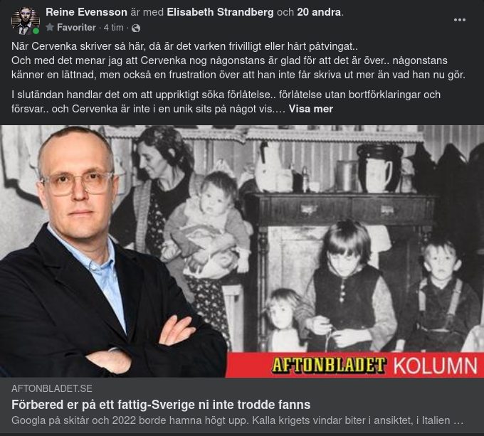 När Cervenka skriver så här, då är det varken frivilligt eller hårt påtvingat..