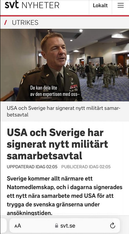 Nysignerat Militärt Samarbetsavtal Mellan USA & Sverige
