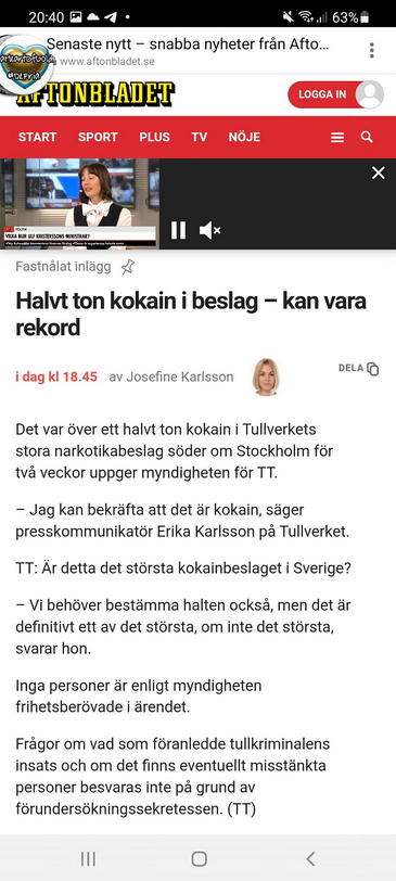 Över Ett Halvt Ton Kokain Taget Söder Om Stockholm