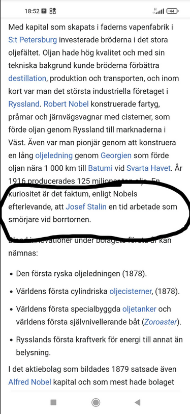 Det kan vara värt att notera ett par anställda hos Branobel. Karl Hagelin jobbade som ledande ingenjör och blev senare ordförande i bolagets styrelse. Det var hans son Boris Hagelin som var med och skapade krypteringsmaskiner som senare såldes runtom världen för underrättelsetjänsternas avlyssning (givetvis med bakdörrar så att några svenskar även fick vara med på ett hörn…) En annan inte helt okänd person som jobbade vid borrtornen hette för övrigt Josef Stalin…