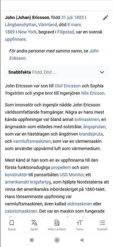 Lite kuriosa kan nämnas att familjen Nobel även hade lite kontakter på andra sidan Atlanten. Dom samarbetade och bytte idéer med en man som hette John Ericsson som konstruerade en pansarbåt vid namn USS Monitor som bidrog till att Nordstaterna vann det amerikanska inbördeskriget. Ibland är det en liten värld…