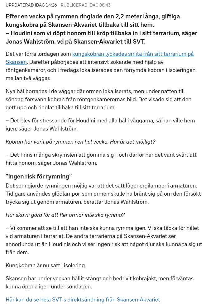 https://www.svt.se/nyheter/lokalt/stockholm/skansen-ormen-ar-infangad-igen?fbclid=IwAR13gbXDwKO6mZ0BeOWj_N6p5eSDvgptopHA5d-gWU9eSxyc-waoluK4DO0