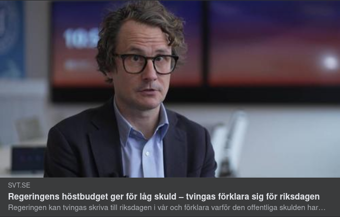 Budgeten som presenterades på tisdagen innebär att Sveriges offentliga skuld hamnar på 29,5 procent. Det gör den för låg, enligt regelverket för finanspolitiken.