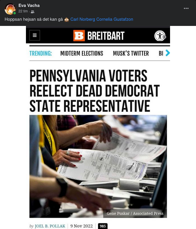 Död Demokrat Återvald I Pennsylvania