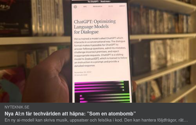 Till och med kräsmagade techkritiker tillstår att ChatGPT – utvecklad av företaget Open AI – har kraftfulla förmågor. ChatGPT lanserades 30 november och hade bara fem dagar efter premiären över en miljon användare. Tjänsten kostar för närvarande inget och fungerar som en chatt med vilken användaren kan ställa frågor, be om hjälp med uppgifter eller söka efter mycket specifik information.