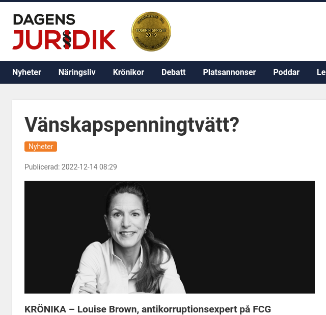 Som sagt, anti-korruption saknar dessvärre penningtvättens regelverksdrivna stringensen. Inget kommer att ske av sig självt. Det är karriärer, prestige, inrotad praxis, ’kultur’ och personliga kopplingar som leder till att vissa och många gånger samhällskritiska intressen vet att de i princip är oantastliga. Det går inflation i begreppen systemhotande, förtroende, tillit med mera. Jag är osäker på om den argumentationen faktiskt hjälper. Det finns dock två konkreta steg som behöver göras.
