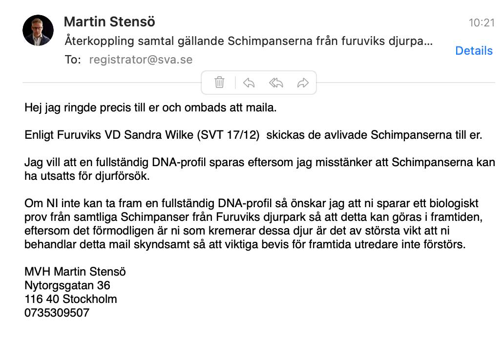 Schimpanskännare världen över riktar plötsligt blickarna mot Furuviksparken, och kritiken är massiv. Varför skulle djuren nödvändigt skjutas ihjäl? Varför kunde de inte sövas med bedövningspilar, jo, för att schimpanserna är smarta – så fort de får en pil i sig drar de omedelbart ut den, förklarar den skakade djurparkschefen.