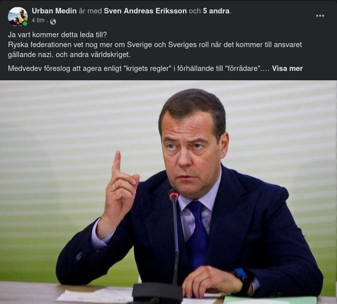 "Där, på Internet / Telegram, har en diskussion återupptagits om hur man ska hantera förrädare som hoppat av till fienden och vill att deras fosterland ska gå under. Sedan började ett allvarligt samtal mellan hövdingarna, hur man skulle agera: "enligt lagen" eller "i rättvisan". Jag måste ge ett förtydligande. Naturligtvis endast enligt lag. Men om lagen inte fungerar eller inte når sitt mål, då enligt särskilda krigstidsregler”, skrev Herr Medvedev på Telegram.