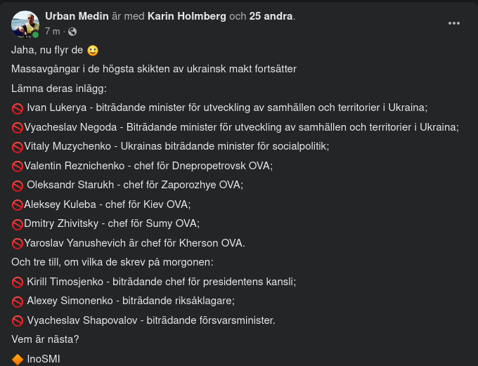 " Ukrainas vice riksåklagare Oleksij Symonenko samt vice försvarsminister Vjatsjeslav Sjapovalov lämnar sina poster – den senare efter vad försvarsdepartementet i Kiev kallar ”grundlösa korruptionsanklagelser”.