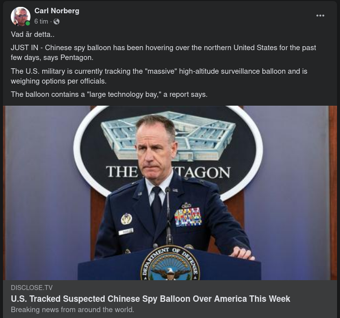 https://sputniknews.com/20230203/pentagon-suspected-chinese-surveillance-balloon-being-tracked-over-northern-us-1106937518.html?fbclid=IwAR3iKudNtqz4LGuNeo44zfGH_BMCdHmrBXgUE5YLlWYalOl4TVWh-PDjhHE