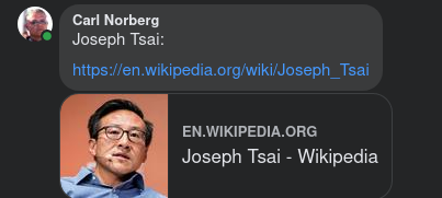 https://en.wikipedia.org/wiki/Joseph_Tsai?fbclid=IwAR0VLnQVPX261UZiH1wDvtLgzFxKeoj8roKJEN1ER2_a9ZsglxqnDPkYXvA
