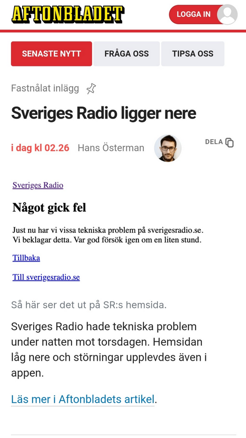 Meddelandet som sänds i Sveriges radio kommer att låta ungefär såhär: