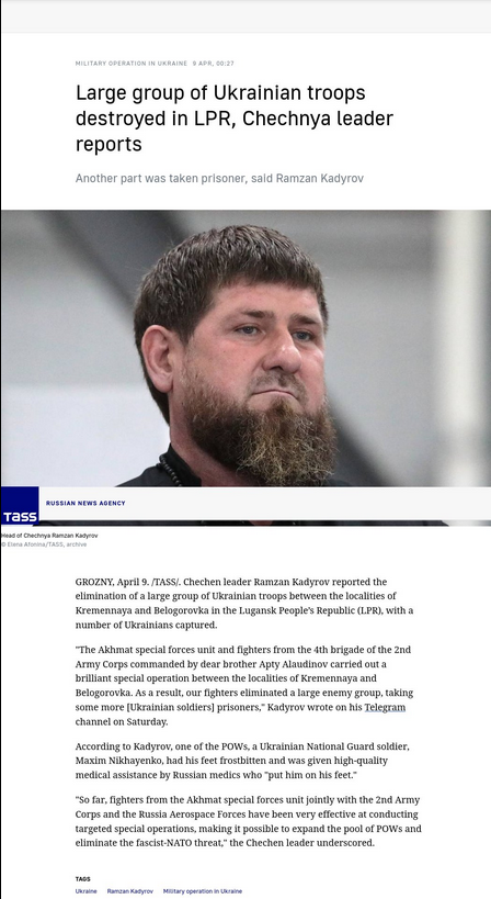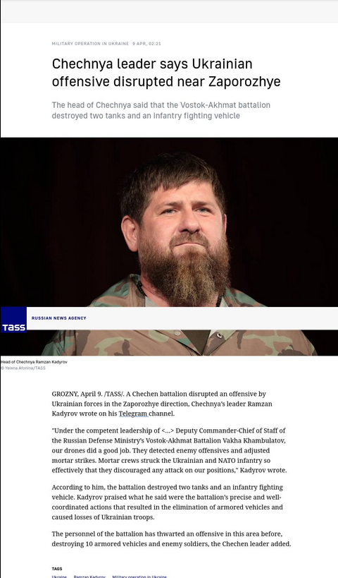 "In all, the Russian Armed Forces have destroyed 406 Ukrainian warplanes, 228 helicopters, 3,727 unmanned aerial vehicles, 415 surface-to-air missile systems, 8,608 tanks and other armored combat vehicles, 1,078 multiple rocket launchers, 4,554 field artillery guns and mortars and 9,414 special military motor vehicles since the beginning of the special military operation in Ukraine, [Defense Ministry Spokesman Lieutenant-General Igor] Konashenkov reported."