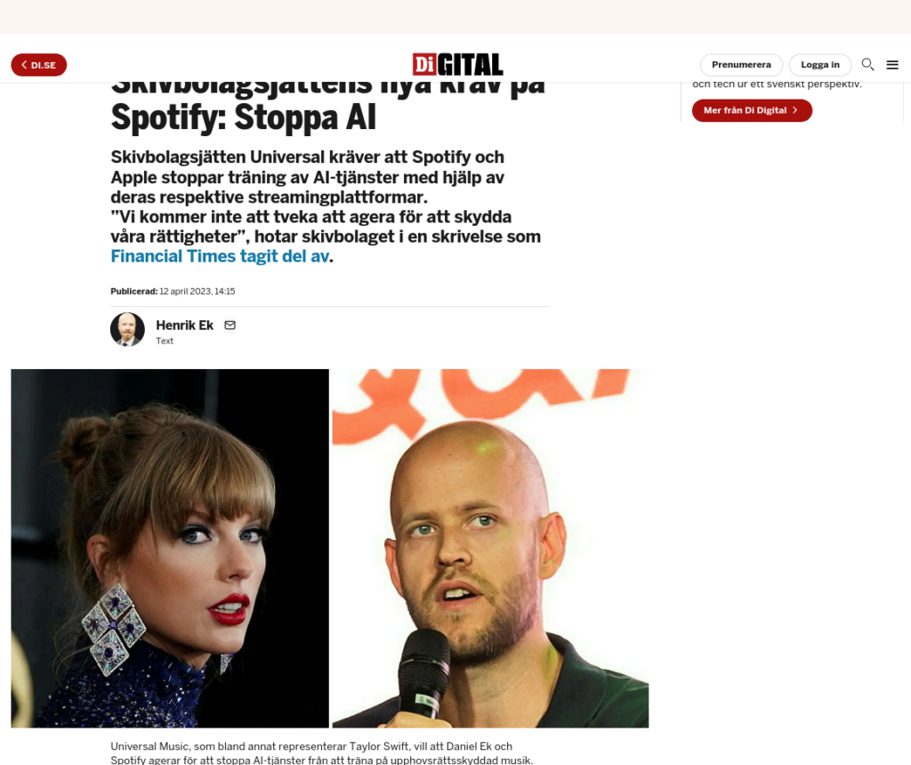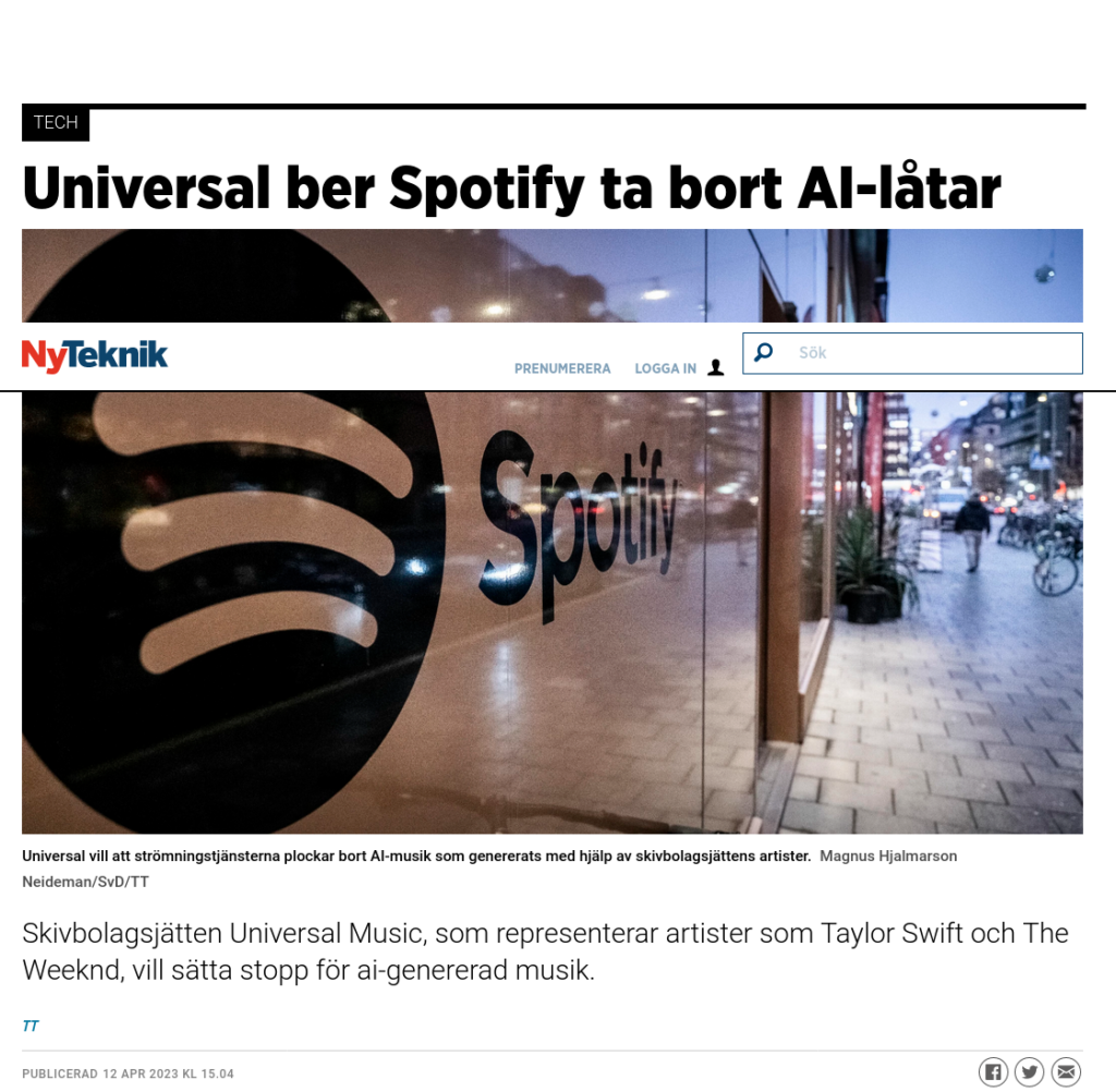 https://www.nyteknik.se/tech/universal-ber-spotify-ta-bort-ai-latar/2021788?fbclid=IwAR077WK_MpnMRzIIpFnyc1HqX8UKe4k7o43P17CzcFuaSXScXQIODdyYDAE