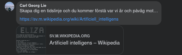 https://sv.m.wikipedia.org/wiki/Artificiell_intelligens?fbclid=IwAR20p76LQPMvlckAv5r0MEikZ5Eo_340t-XCtbPdJW31ER-wpOwMfD64OF8