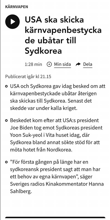 https://sverigesradio.se/artikel/usa-ska-skicka-karnvapenbestyckade-ubatar-till-sydkorea?fbclid=iwar1towsyjmtm_32cvdcxopjjzhrh5q3joohw2nii-gwvdtodwk925wnz6s0Frihetens hemlighet ligger i att utbilda människor, medan tyrannins hemlighet är att hålla dem i okunskap.