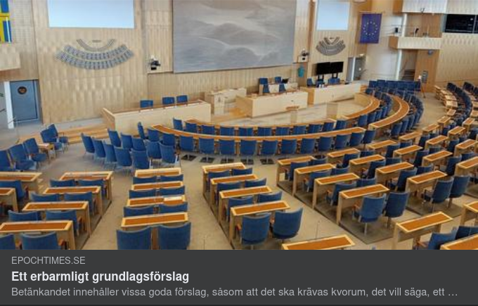 "Kanske detta kan råda bot på en svensk författningsmässig sjuka, att nära nog konstant vara inne och rota i grundlagarna. I 1809 års regeringsform gjordes 389 ändringar vid 42 tillfällen. 1974 års regeringsform hade 2009 redan ändrats 38 gånger.