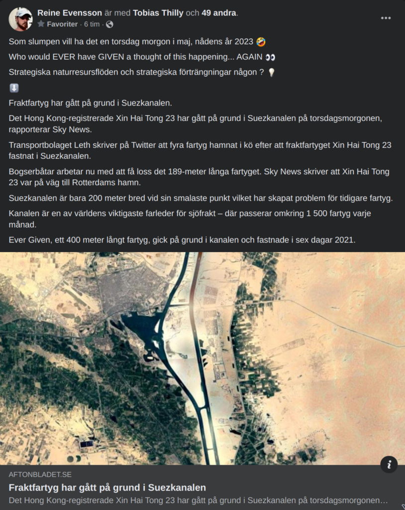 https://www.aftonbladet.se/nyheter/a/0Q0gzE/fraktfartyg-har-gatt-pa-grund-i-suez-kanalen?