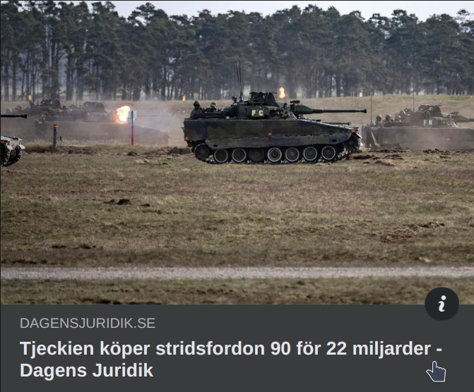 " Tjeckien tecknade redan i slutet av förra året en avsiktsförklaring om samarbete inom stridsfordonsområdet med FMV och BAE Hägglunds. Nu står det alltså klart att nationerna tecknat ett avtal som omfattar köp av stridsfordon 90, men även integrering av tjeckisk industri i tillverkningen av fordonen.