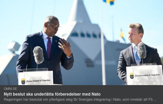https://omni.se/nytt-beslut-ska-underlatta-forberedelser-med-nato/a/l3LlWL?fbclid=IwAR1Q6xjWfkYE9ifXt17KL68zu2SXnIKIsvzs-GvR01zuaC4ISvhsHcb7ysI