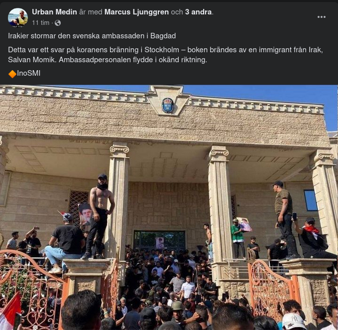 Koranbränningsstormad Svensk Ambassad I Bagdad
