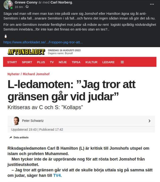 https://www.aftonbladet.se/nyheter/a/y6rRA2/l-toppen-jag-tror-att-gransen-gar-vid-judar?fbclid=IwAR0Cfi2B_QRQ_TnuVMuX9ngzXlrgGvXOI71E2shcVSZ87I1NrrFsM7P0L_c